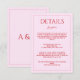 Cartão De Informações Modern blush pink red minimalist wedding details