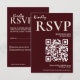 Cartão De Informações Modern Elegant Burgundy Wedding QR CODE RSVP