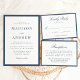 This reception enclosure card features “Reception” in refined navy calligraphy with your reception details shown below in traditional serif type. A deep navy border surrounds the design, giving the card a tailored, sophisticated appearance that feels both classic and enduring. The balanced layout offers a clear and elegant way to present your reception information, making this enclosure well-suited for traditional, modern classic, and formal weddings.