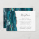 The left-hand edge of this elegant modern wedding reception enclosure card features a teal blue watercolor agate border trimmed with faux rose gold glitter. The title appears in handwriting script, with customizable text below in charcoal gray copperplate font on a white background. The reverse side features a matching teal blue and rose gold agate design.