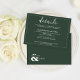 Um Moderno Esmeralda Verde / Verde Escuro Casamento Detalhes O cartão de inclusão apresenta uma elegante letra cursiva caligrafada e fonte serif clássica com os nomes da noiva e do noivo incluídos na parte de trás.