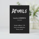 Modern black and white graduation enclosure card designed to share additional event details in a clean and minimalist format. Ideal for including meal information, celebration timing, or dress code alongside a graduation invitation or announcement. A simple and elegant insert card that complements a complete graduation stationery suite without overcrowding the main design. Suitable for modern and neutral graduation themes.