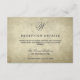 Este cartão de detalhes de recepção tem uma aparência vintage, seu papel impresso para parecer desbotado e manchado. Fontes elegantes e um monograma simples.