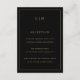 Cartão de inclusão de casamento simples com um design moderno e elegante com seu monograma de duas letras no topo, juntamente com as informações do seu recebimento, cercado por uma fina borda. Todos os elementos de design são em dourado falso sobre um fundo preto e podem ser alterados na ferramenta de edição de design. Um design chique e elegante que é ótimo para um casal minimalista. Esses cartões de inclusão são uma adição perfeita ao seu conjunto se o seu recebimento for realizado em um local diferente do que sua cerimônia.