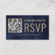 Cartão De Informações Navy Blue Gold Online QR Code RSVP Wedding Website
