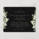 Um cartão de encerramento preto para recepção de casamento para recepções de casamento que são realizadas em um local diferente da cerimônia de casamento. O cartão apresenta uma borda de snowberries pintadas à mão e eucalipto na frente e uma coroa na parte de trás do cartão. Todo o texto é totalmente editável e os pontos espalhados na frente e atrás podem ser excluídos antes de encomendar, se preferir. Este cartão está disponível com desenhos botânicos alternativos, em formato retrato e em cores diferentes. Por favor, visualize a Coleção na minha loja para ver todas as opções e itens coordenados.