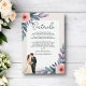 Este elegante cartão de casamentos florais de aquarela é perfeito para um casamento moderno. A design romântica apresenta uma elegante estrutura floral de aquarela com uma ilustração noiva e noiva e caligrafia preta sobre fundo branco.
