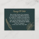 Cartão De Informações Noiva Verde Esmeralda Dourado Moderno Folhas Desen
