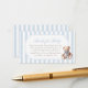Um toque de eterno para seus convites para chuveiros de bebê. Este livro para cartão de bebê contém listras azuis elegantes, ursinho de pelúcia vintage, e tipografia clássica — convidando convidados a ajudar a construir a primeira biblioteca de bebês com um livro apreciado.