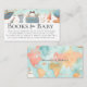 Um convite companheiro para chá de bebê misto, o cartão de inserção "Livros para o Bebê", que é neutro em termos de gênero, com um tema de viagem e aventura, apresentando uma ilustração em aquarela do mapa-múndi com personagens fofos e elementos relacionados a viagens, com o título "Nossa Maior Aventura Está a Caminho". A paleta de cores laranja e verde é neutra em termos de gênero, para os pais que não desejam revelar o sexo de seu pequeno. Perfeito para futuros pais que amam viajar, que amam o tema de aventura para um chá de bebê.
