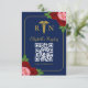 Nurse graduation with pink and red roses against a navy blue background. Gold caduceus and script typography.