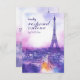 This two-sided RSVP card from the Amour Éternel à la Parisienne collection invites guests to respond online with grace and ease. The front features a romantic watercolor Paris skyline, with the Eiffel Tower glowing under a moonlit sky in soft purples and blush tones. The reverse includes a QR code and customizable text directing guests to your wedding website or email for replies. Elegant, practical, and infused with Parisian charm—perfect for modern couples who love timeless romance and seamless planning.