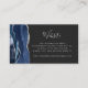 A borda esquerda deste cartão de enclave de site de casamento moderno e elegante apresenta uma borda de ágata azul-marinho em aquarela, decorada com brilho de prata falsa. O título aparece em escrita à mão, com texto personalizável abaixo em fonte de cobre prata-cinza em um fundo preto ardósia. O lado reverso apresenta um código QR personalizado que os convidados podem escanear para visitar seu site e responder online.