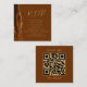 A borda esquerda deste elegante e moderno cartão de cerimônia de núpcias apresenta uma laranja queimada e uma cor-de-água ferrugem borda cortada com falsa brilho dourado. O título aparece em um script de escrita manuscrita dourado, com texto personalizável abaixo em uma fonte em copperplate em um fundo marrom nutmeg. Carregue o código QR do seu site de casamento para substituir a imagem de amostra no verso, enquadrado pelas palavras "digitalize-me para RSVP".