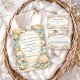 A refined dusty blue hydrangea design framed in an elegant baroque-inspired composition. Voluminous hydrangea clusters in soft powder and periwinkle tones are paired with creamy ivory florals and muted sage greenery, creating a balanced, symmetrical garden frame. The warm parchment-style background adds a subtle antique touch while keeping the overall look airy and sophisticated. Ideal for a timeless celebration with a romantic, elevated aesthetic.