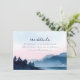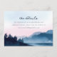 Este cartão de acompanhamento de casamento apresenta uma paisagem serena em aquarela com tons pastéis suaves de rosa claro, lavanda e azul, criando uma atmosfera tranquila. O design mostra um corpo de água reflexivo e silhuetas de montanhas em camadas, evocando uma sensação de paz e beleza natural. A tipografia de roteiro elegante destaca a frase "os detalhes", enquanto a fonte serifada limpa fornece informações adicionais, garantindo legibilidade contra o fundo suave. Perfeito para adicionar um toque artístico à papelaria do seu casamento, este cartão captura a essência da antecipação e elegância em seu estilo minimalista, porém evocativo.