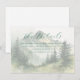 Este cartão de acompanhamento de casamento apresenta um design sereno e inspirado na natureza, com uma paisagem montanhosa como ponto focal, cercada por pinheiros. A paleta de cores inclui tons suaves de verde e tons terrosos suaves, criando uma atmosfera tranquila e calmante. A técnica artística se assemelha a um efeito de aquarela pintada à mão, adicionando uma qualidade etérea ao estilo minimalista e contemporâneo. A tipografia de letra cursiva elegante destaca "Os Detalhes", enquanto o texto serifado clássico fornece informações adicionais, tornando-o perfeito para transmitir detalhes importantes do evento de forma pacífica e convidativa.