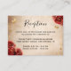 Crie seus próprios cartões de recinto elegantes vermelhos e dourados usando este belo e simples modelo DIY. A obra de arte original em aquarela de Raphaela Wilson apresenta flores vermelhas com sotaques de falso ouro amarelo champanhe sobre uma textura de fundo de pergaminho antigo, rústico e vintage. No verso desses cartões de recepção em papel pergaminho floral estão borboletas de confete cintilante com brilho falso, uma bela borda de filigrana e uma coroa de rainha / tiara de princesa. Basta adicionar seu nome e detalhes do evento aos campos de modelo de tipografia moderna preta e caligrafia. Sinta-se à vontade para alterar qualquer fonte para o que melhor se adequa ao seu estilo. Qualquer informação personalizada pode ser adicionada a esses cartões, como: direções da recepção, quando a dança começa, horário do jantar, instruções de RSVP, acomodações para convidados, bem como um endereço de site. Transforme-os em passes de quince luxuosos que indicam quantos convidados podem ser admitidos por ingresso e até adicione um código QR. Esses cartões de detalhes de fadas e borboletas podem complementar papelaria personalizada ideal para casamentos com rosas vermelhas, uma quinceañera princesa, festa de aniversário de 16 anos ao estilo ranchera, chá de bebê ou chá de noiva - entre outros eventos especiais. Categoria: cartões de passe