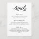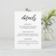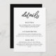 Cartão de informações para convidados de casamento: não se esqueça deste cartão útil com todos os detalhes importantes do seu casamento, como localização, acomodação, transporte, etc... Simples e moderno: uma tipografia minimalista em preto e branco, ideal para um casal moderno. Não gosta de preto e branco? Você pode personalizar facilmente o seu cartão e alterar a cor do texto.