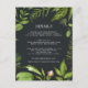 Projetado para combinar com nossa coleção de casamento Jardim da Meia-Noite, este cartão de informações para convidados com um fresco tom verde botânico apresenta uma borda de folhagens que envolve os detalhes principais do seu casamento, como acomodações de hotel, informações da recepção de boas-vindas, site e mais, em branco sobre um fundo escuro elegante. Adicione seu texto personalizado usando os campos fornecidos e use a função Personalizar para ajustar fontes, tamanhos e espaçamento.