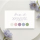 This trendy wedding attire enclosure card features a lovely watercolor floral display and color coding options, alongside a contemporay font in lavender purple, against a soft ivory background. The design is simple and chic. This unique collection is the perfect choice for a spring summer wedding. Colors include lace, blush rose, lavender, dusty blue and sage.