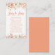 Cartão De Informações Peach Floral Chá de fraldas Books para Bebê
