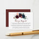 Este cartão de pedido de receita de casamento floral boho luxuoso é perfeito para um chá de panela rústico. O design apresenta elegantes flores em azul, borgonha, rosa e blush em aquarela com folhagem verde.