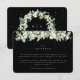 Um pequeno cartão preto de inclusão de casamento exibindo detalhes de resposta online/RSVP, informações do casamento e o site do seu casamento. Apresenta uma elegante guirlanda de snowberries pintadas à mão e eucalipto na frente e uma coroa na parte de trás do cartão. Todo o texto é totalmente editável e os pontos espalhados na frente e no verso podem ser excluídos antes de encomendar, se preferir. Este cartão está disponível com desenhos botânicos alternativos e em diferentes cores e tamanhos. Por favor, visualize a Coleção na minha loja para ver todas as opções e itens coordenados.