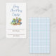 Peter Coelho com uma jaqueta azul flores azuis chá de fraldas adivinha quantas cenouras jogam. Um belo coelhinho numa jaqueta azul em um jardim azul de campanhe para um bebê chá de fraldas cartões de jogo