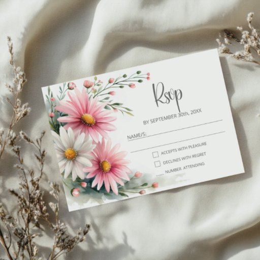 Cartão De Informações Pink and White Daisies Wedding Details