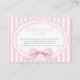 Cartão De Informações Pink Bow Girl Coquette Striped Baby Shower Books