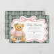 Cartão De Informações Pink Coquette Bow Bear Plaid Baby Registry Card
