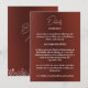 Esta elegante carta de detalhes do casamento apresenta uma frente simples no cartão e flores silvestres desenhadas à mão no verso. Personalize a frente com qualquer informação relativa ao casamento e personalize a parte de trás com as iniciais do casal. Itens correspondentes disponíveis.