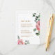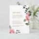 Lindas e quentes rosas cor-de-água rosa com um cartão de informação floral de convidado de casamento verde. Compre esta coleção para coordenar itens de casamento.
