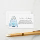 Um cartão de inserção de solicitação de livro para unidade por chá de fraldas ou chá de fraldas por e-mail. Apresentando um carro azul-aquarela com elefante e poema: "UMA PEQUENA SOLICITAÇÃO, ESPERAMOS NÃO MUITO DURO POR FAVOR ENVIAR OU TRAZER UM LIVRO EM VEZ DE UM CARTÃO QUE ELES CHERARÃO O LIVRO, BEM AMADO OU MARCA NOVO POR FAVOR ASSINE O DENTRO COM UMA MENSAGEM VOCÊ!"