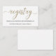 Simples elegância. Linda caligrafia acentuou-se com um falso efeito de brilho dourado. O uso de um formato de cartão de visita comunica fácil e eficientemente o registro de presentes.