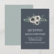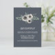 Os cartões de recepção de casamento coordenam-se com a nossa suíte de convites para o casamento Anemone e Eucalyptus e são uma forma chic de fornecer os seus detalhes de recepção aos convidados. Design apresenta um spray de flores de anêmona de marfim creme e ramos verdes de eucalipto em aquarelas moles, em uma dramática cinza azul de enfumaçado com letra branca. A placa se reverte para uma faixa poeirenta sólida.