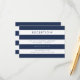 As placas de receptáculo elegantes e simples contêm inscrições modernas em um fundo listrado azul e branco marinho.