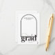 Celebre a sua grande conquista com o nosso Cartão de Formando de Arca Negra de FORMANDO Moderno! Essa placa minimalista apresenta um design de arco contemporâneo e um FORMANDO ousado. Personalize-o e coloque-o no seu convite ou anúncio de festa de formatura para os amigos e familiares preencherem.