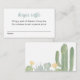 Uma bela placa de fralda do estilo fiesta. Este cartão de cacto com tema "caixa" apresenta um belo design de água do deserto, a cores aquáticas, em tons delicados de azul empoeirado, amarelo e verde do deserto. Perfeito para uma festa de chá de fraldas a sudoeste ou moderna.