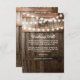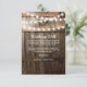 Cartão de poço de desejos de casamento country com fundo de barril de madeira rústica, luzes de corda cintilantes, seu monograma e um modelo de poço de desejos editável elegante.