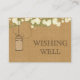 cartões de poço de desejos para casamento em jarros de mason com juta rústica e rosas marfim. Produtos compatíveis também disponíveis.