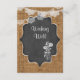 Este cartão de caixa de desejos de casamento com visual de quadro-negro preto e branco moderno e sofisticado tem uma aparência de burlap FAUX marrom rústico com ilustrações de um jarro de mason com flores, folhas e galhos, e duas bandeiras de bunting de renda na parte superior que combinam com o convite de casamento mostrado abaixo. Com suas cores versáteis, você pode usá-lo durante todo o ano em seu casamento rústico ou country na primavera, verão, outono ou inverno. Você também pode alterar o texto para transformá-lo em um cartão de acomodações, um cartão de registro de presentes, um cartão de direções ou um cartão de informações de casamento. É mostrado aqui em papel básico. É facilmente personalizado com suas próprias informações. ****Por favor, note que tudo será impresso como aparece no seu monitor. A Zazzle não editará nada para erros de digitação ou desalinhamento, etc., e eu não verei após a sua encomenda. Se precisar de ajuda com a redação, por favor, envie-me um e-mail ANTES de encomendar. ALÉM DISSO, algumas das diferentes formas PODEM cortar partes do design, por isso é melhor entrar em contato comigo se desejar em qualquer outra forma. Se houver outros itens que você precise para