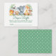 Cartão de Bilhete de Chá de fraldas Verde Para Animais Safari De Aquarelas. Os bebês incluem elefante, macaco, girafa, rinoceronte, zebra e leão nas folhas de samambaia. Cores d'água, vegetação botânica. Texto Verde e Fundo Verde com Bolinhas.