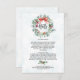 Design de cartão Elegante único, com flores brancas de cor aquosa, arco, verde de inverno, morango sagrado, mirtilos, sobre fundo desbotado com flocos de neve. Use a ferramenta Personalizar para adicionar suas informações. Para obter itens correspondentes, visite minha coleção de feriados.
