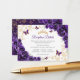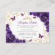 Purple gold Quinceanera reception details enclosure cards. Features, script font, gold butterflies, watercolor roses and tiara. Perfect for an elegant princess style glam celebration. Personalize with your own details.