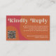 Abstract shapes retro vintage 70s style boho unique budget wedding scanning QR code wedding website response enclosure card with "kindly reply" bold typography in a vibrant trendy modern red, beige tan and orange chic autumn fall color palette. +++++++ Please note that all the colors are changeable. +++++++++ Bigger sizes available. ++++++++++++ Matching invitation and stationery are available in the collection.