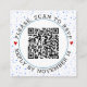 Código QR on-line RSVP fronteira azul-redonda moderna, confete azul-brilho e cartão de cerimônias de corações vermelhos. Seus convidados podem digitalizar o código QR nesta placa para RSVP on-line. O fundo cobrir um padrão de confete azul.