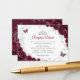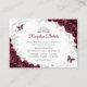 Burgundy silver and white floral Quinceanera reception details enclosure cards. Features, script font, silver butterflies, watercolor roses and tiara. Perfect for an elegant princess style glam celebration. Personalize with your own details.