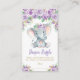 Cartão De Informações Raffle Chá de fraldas de Elefante Floral Roxo